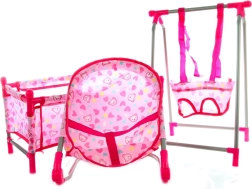 Set de muñecas 4 en 1 con cuna, columpio, hamaca y trona