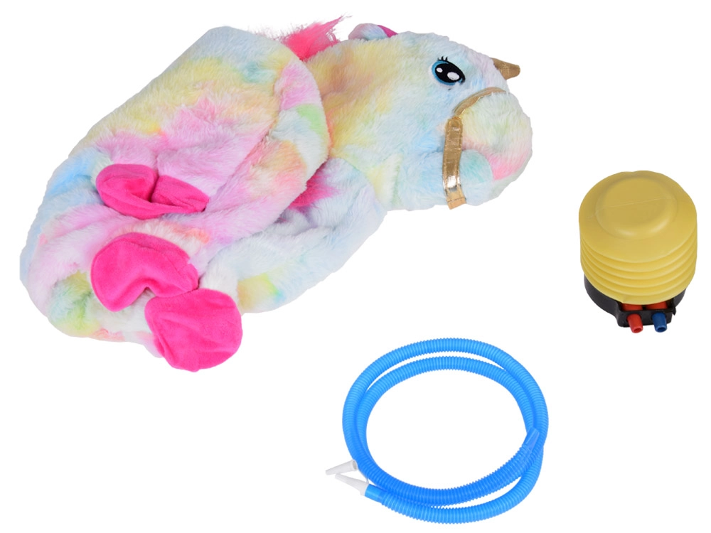 La práctica bomba manual con manguera permite inflar y desinflar el unicornio rápidamente: fácil puesta en marcha, almacenaje y transporte.