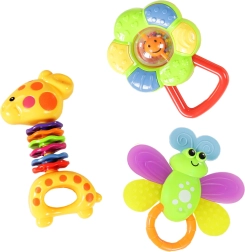 Con este juego de sonajeros alegres, garantizarás horas interminables de diversión para tu bebé. Cada sonajero está cuidadosamente diseñado teniendo en cuenta la seguridad y la comodidad de los niños. Sus colores vivos y formas interesantes estimulan los sentidos, favorecen el desarrollo de la coordinación mano-ojo y aumentan su curiosidad.