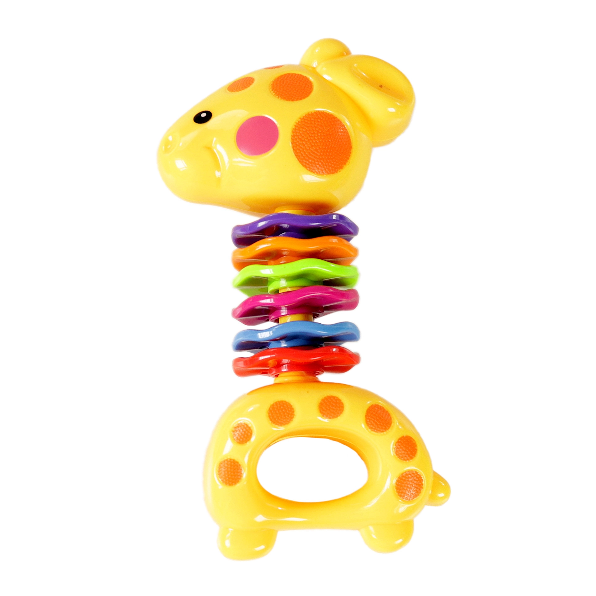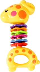 La jirafa está diseñada para cautivar a cualquier niño con sus anillos de colores alrededor del cuello. El sonajero es fácil de sujetar y seguro, aportando alegría al tacto y al movimiento.