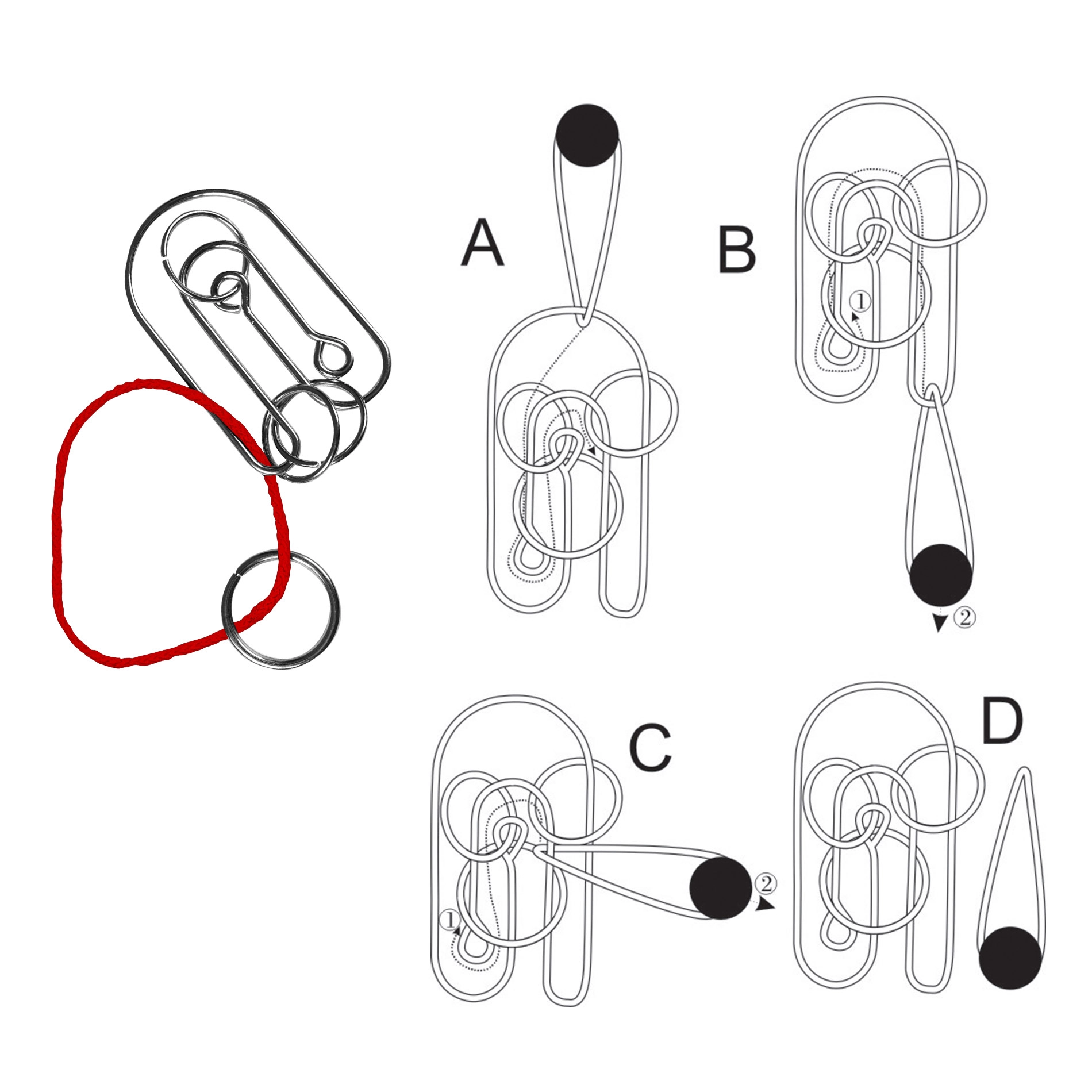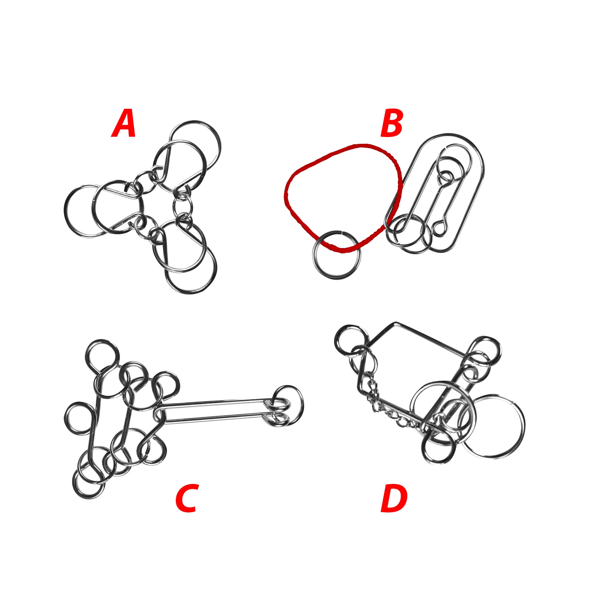 Este juego incluye cuatro rompecabezas metálicos únicos que pondrán a prueba tu pensamiento lógico y tu motricidad fina.