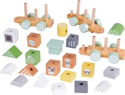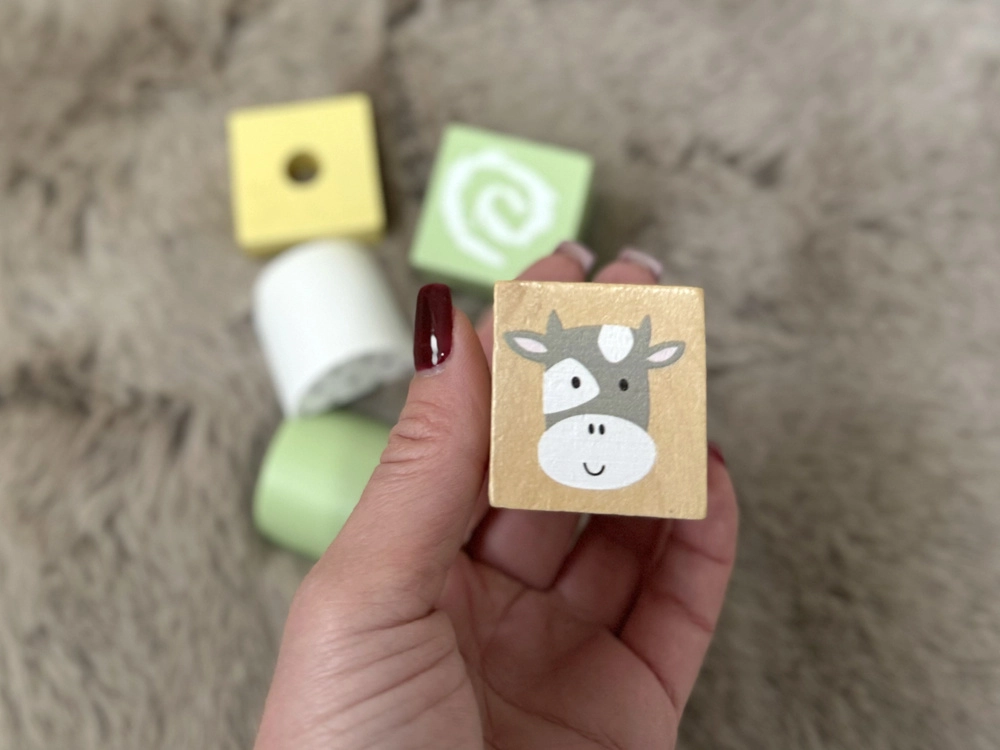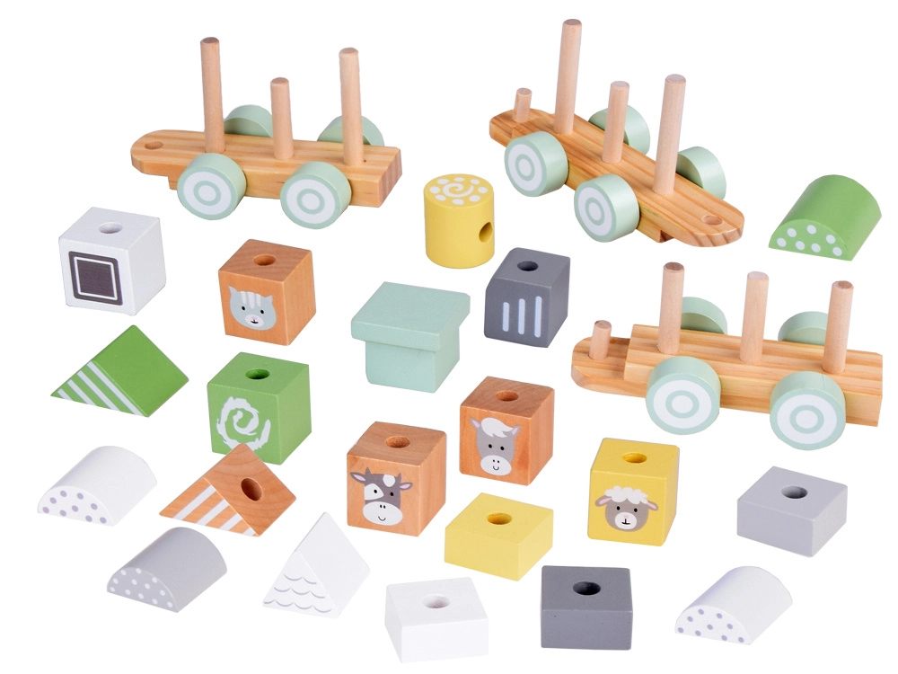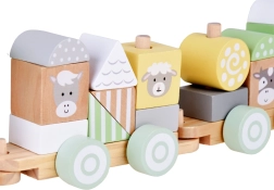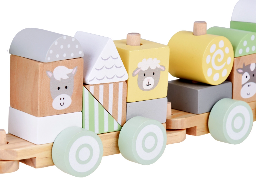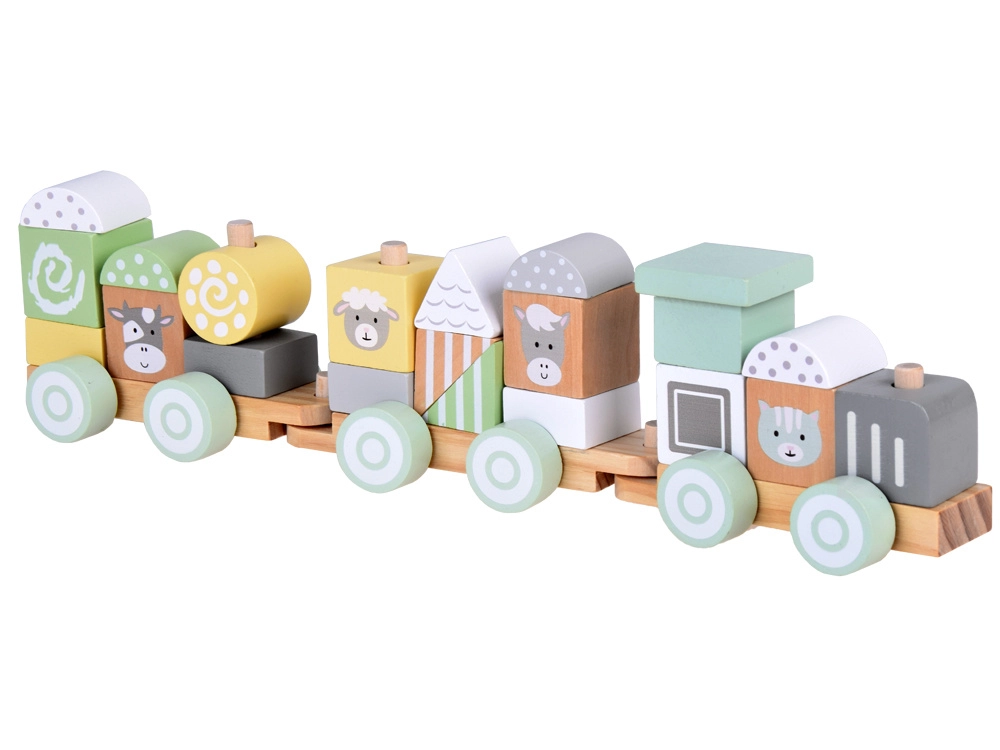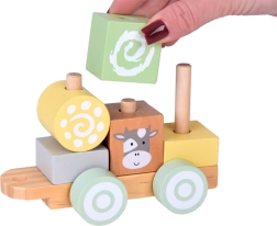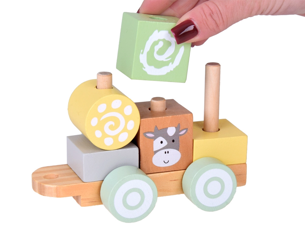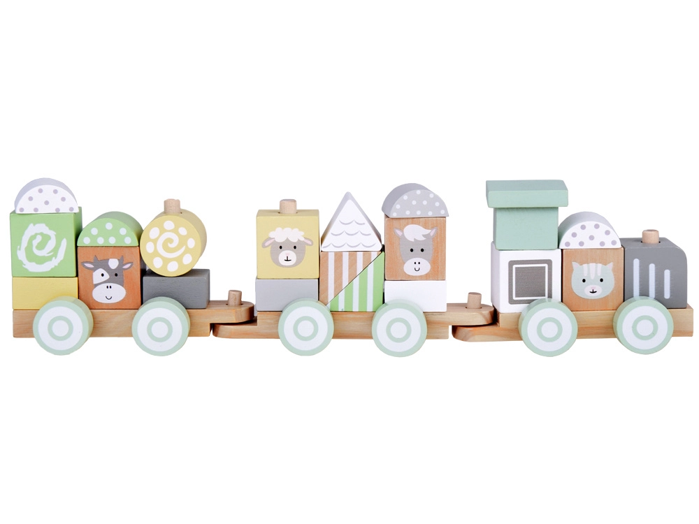 El trenecito de madera es un juguete ideal para los más pequeños. Está compuesto por bloques de colores con distintas formas y caritas de animales, como vaca, oveja, caballito y gatito, lo que garantiza un entretenimiento muy atractivo. Los niños pueden reorganizar, apilar y crear libremente, desarrollando así su motricidad y su imaginación.
