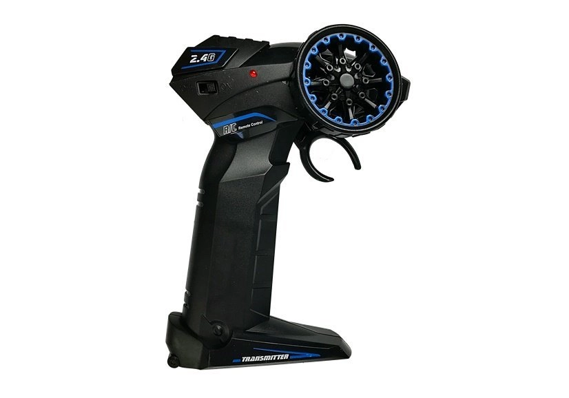 El mando inalámbrico funciona a 2,4 GHz, lo que permite conducir sin interferencias incluso con otros coches RC cerca. Su diseño ergonómico garantiza un manejo y agarre sencillos.