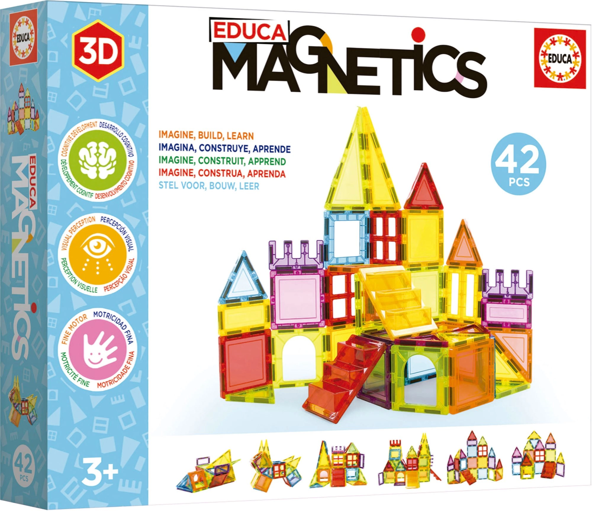 Descubre un mundo creativo con el juego de construcción magnético EDUCA Magnetics con 42 piezas: ideal para niños a los que les gusta crear, explorar y aprender jugando. El set fomenta la percepción visual, la motricidad fina y la coordinación ojo–mano. Las piezas son seguras, tienen bordes redondeados y están fabricadas con materiales de calidad, para que los niños puedan disfrutar con seguridad construyendo todo tipo de objetos 3D a partir de polígonos 2D.