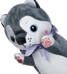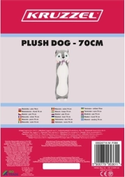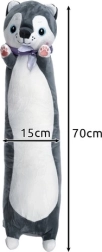 Adorable y extralargo perro husky de peluche de la marca KRUZZEL, ideal como juguete abrazable, cojín y decoración en uno. Gracias a su longitud de 70 cm es perfecto para abrazar, ofrece suave apoyo al dormir y es seguro desde el nacimiento (0+). Fabricado con materiales de alta calidad, transpirables y resistentes, es fácil de mantener: lavable a máquina.