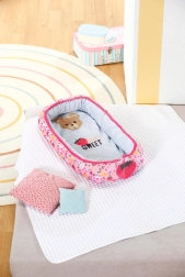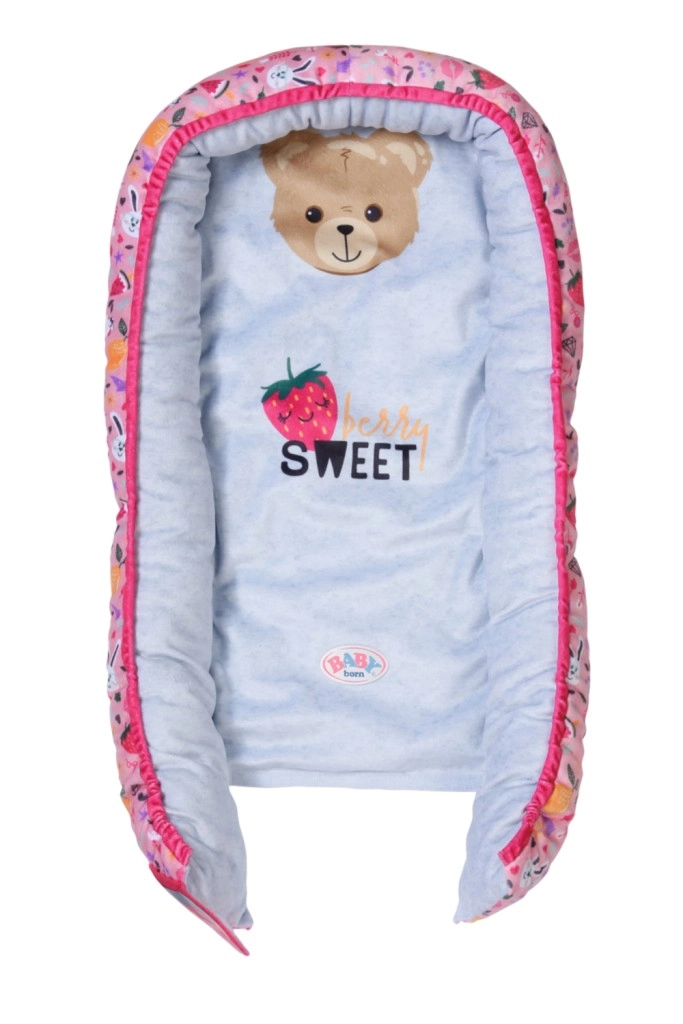 Nido cómodo y seguro para muñecas BABY born con un diseño divertido lleno de coloridas ilustraciones de frutas y animalitos. Un complemento ideal para la habitación infantil.