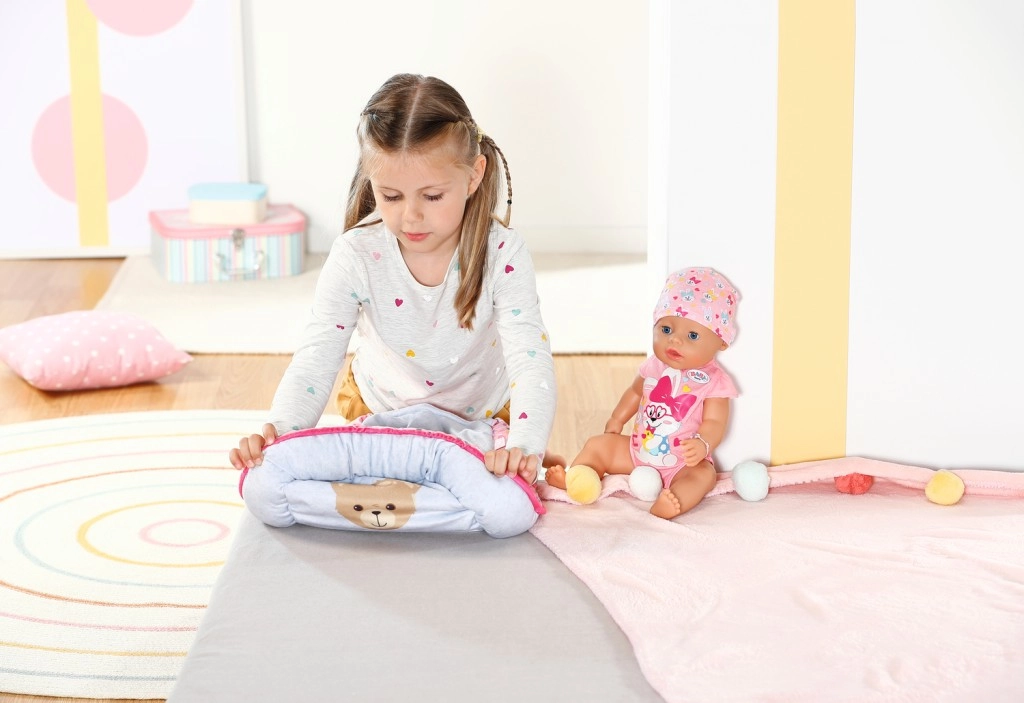 Descubre la magia de un nido divertido y confortable para muñecas BABY born. Está hecho de material suave y adornado con motivos coloridos que captan la atención de los niños.