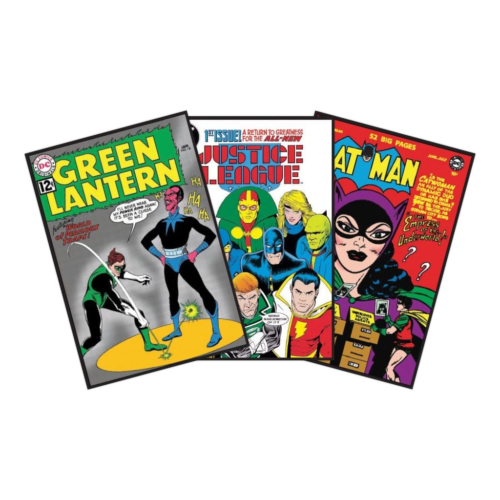 Esta colección de coleccionista ofrece un vistazo único a la historia del cómic estadounidense. En las postales encontrarás portadas e ilustraciones de época con héroes legendarios como Superman, Batman y Wonder Woman. Cada postal destaca por su impresión de alta calidad y un formato ideal para enviar, enmarcar o exhibir.