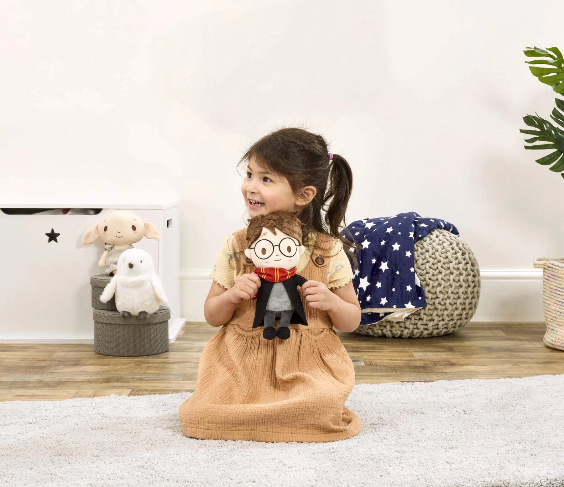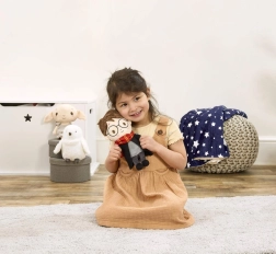 Este peluche oficialmente inspirado luce la icónica capa negra y la bufanda rojo-amarilla (de Gryffindor), que junto con las gafas redondas y la cicatriz en forma de rayo recuerdan fielmente al querido mago. Es ideal para el desarrollo sensorial y las rutinas tranquilizadoras antes de dormir.