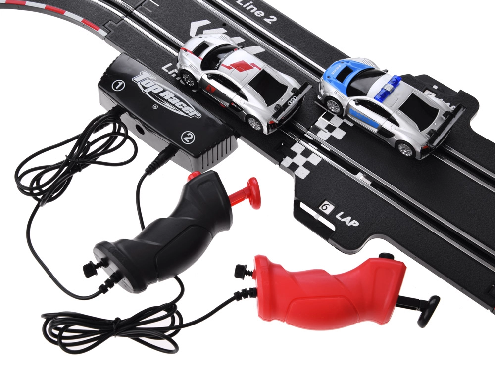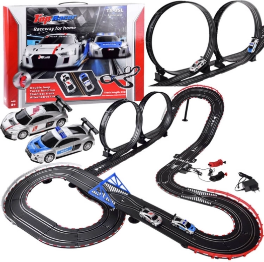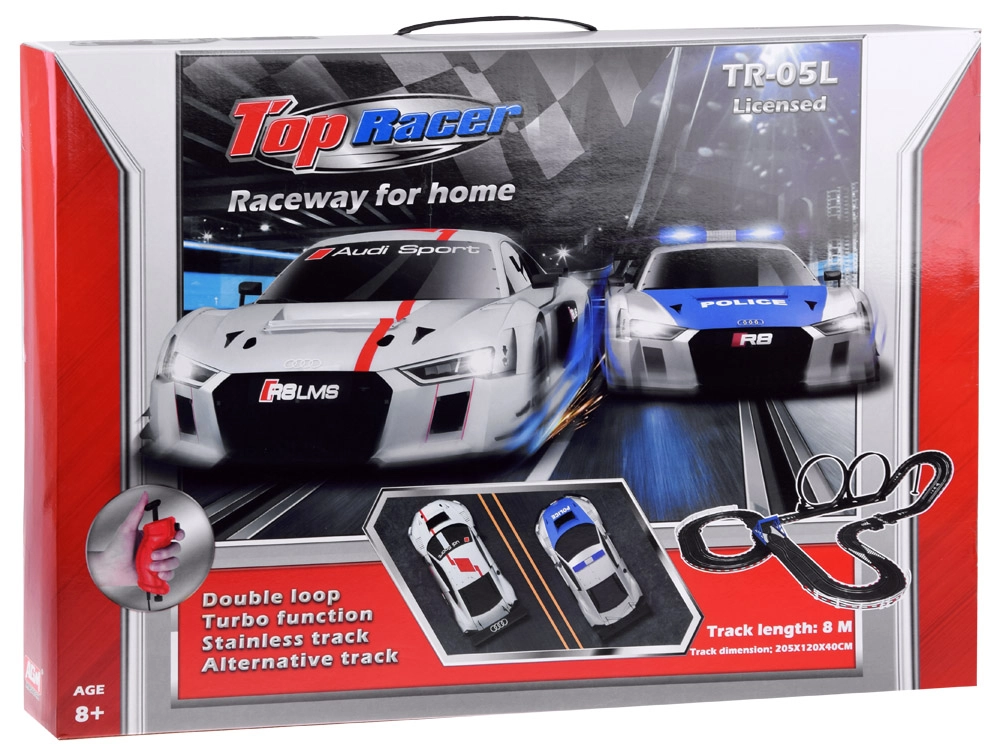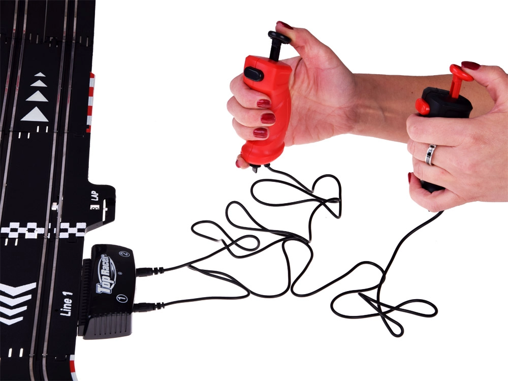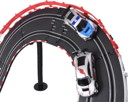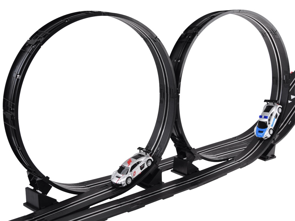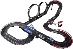 La autopista está diseñada para duelos emocionantes a dos, mejora los reflejos, la coordinación y ofrece una construcción del circuito variable. Los bordes protectores sólidos, la estructura estable y los recambios (neumáticos y contactos) garantizan una larga vida útil y carreras sin preocupaciones.
