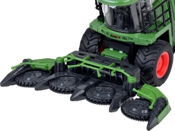 La cosechadora cuenta con un gancho para conectar y retirar fácilmente el accesorio de corte. Las cuchillas móviles añaden acción y enseñan a los niños los principios de la cosecha.
