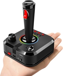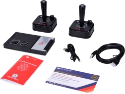 El paquete incluye 2 mandos inalámbricos de 2,4 GHz con diales giratorios para un control auténtico en juegos como Breakout o Warlords.