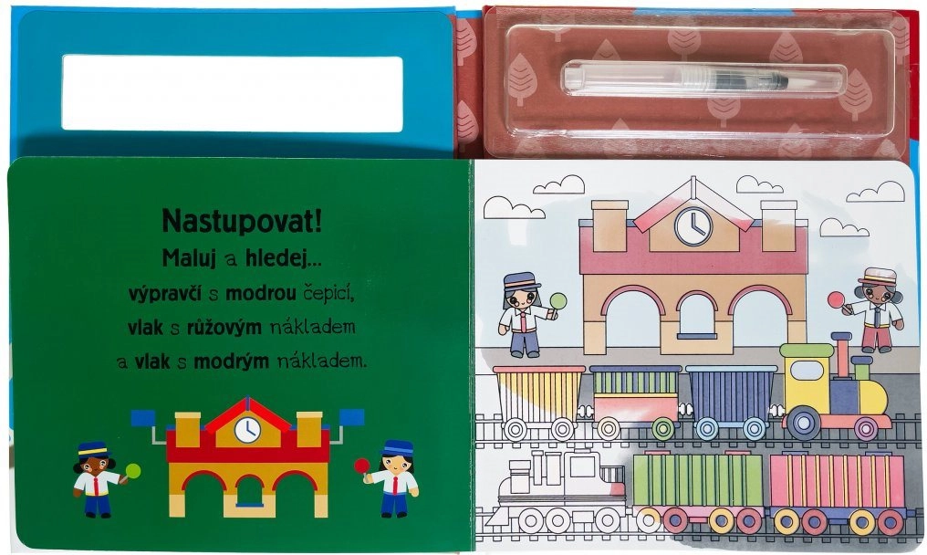 Disfruta de la pintura sin desorden con libros para colorear reutilizables. Solo necesitas agua, un pincel y tu niño descubrirá imágenes ocultas de trenes y potentes máquinas.
