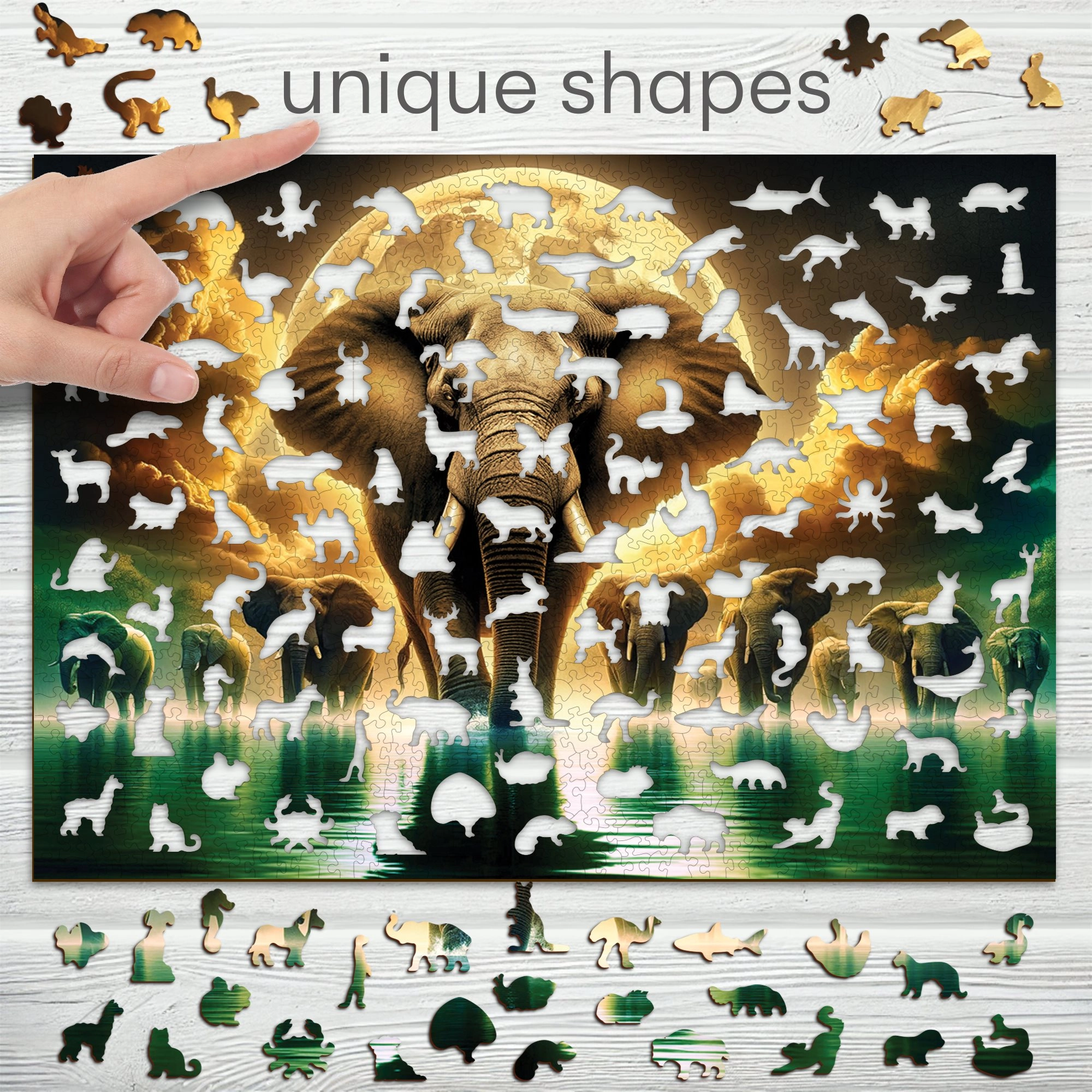 Adéntrate en un mundo de fantasía con el rompecabezas de madera WOODEN CITY – Sueños de Elefante. Gracias al preciso corte láser, las piezas tienen bordes lisos sin astillas y las piezas seleccionadas con forma de animales enriquecen el motivo con delicados detalles. Estas piezas especiales pueden sostenerse por sí solas como pequeñas figuritas, convirtiendo el rompecabezas no solo en diversión, sino también en una pieza de colección.