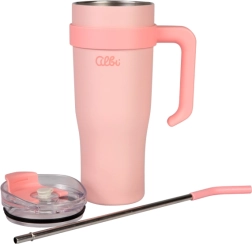 El vaso térmico está fabricado en acero inoxidable de alta calidad, libre de BPA, y equipado con una pajita reutilizable de acero inoxidable con boquilla de silicona para beber con comodidad y seguridad. Su mantenimiento es sencillo gracias a la posibilidad de lavarlo en lavavajillas, recomendado en la bandeja superior. Ideal para café, té, agua y bebidas frías con hielo.