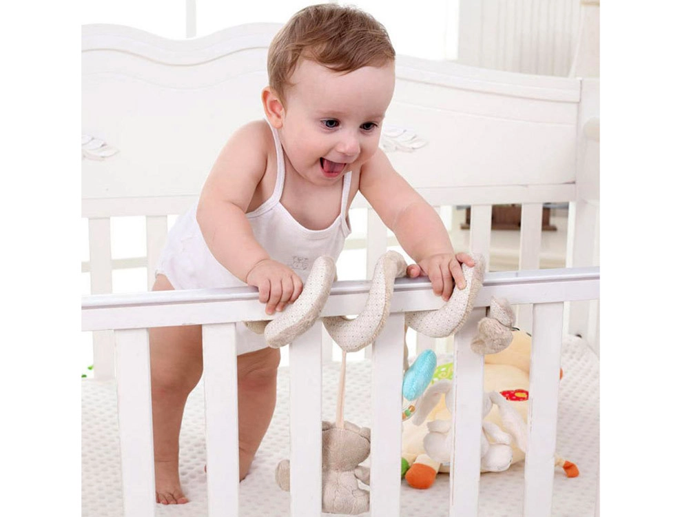 La forma en espiral permite una fijación sencilla a la cuna, al cochecito o a cualquier otro lugar donde los niños puedan jugar y explorar.