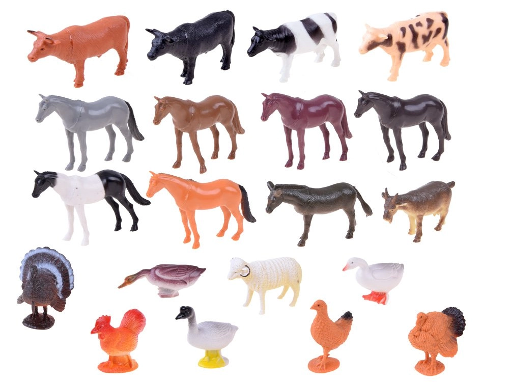 - Set completo: caballos, vacas, cerdos, burros, aves de corral y otros animales de granja populares.