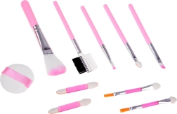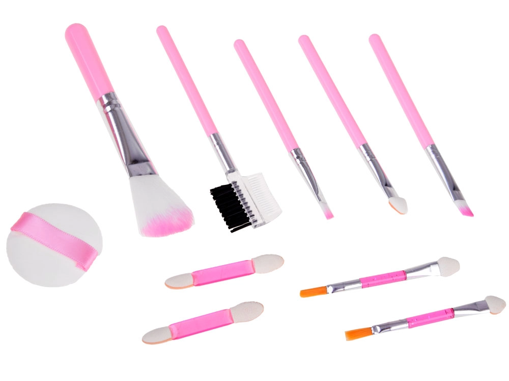 Diferentes tipos de brochas y esponjitas con mangos ergonómicos ayudan a los niños a aprender buenos hábitos de maquillaje.