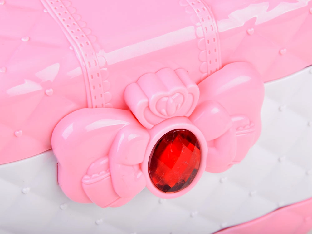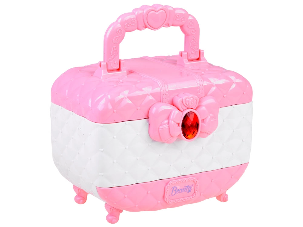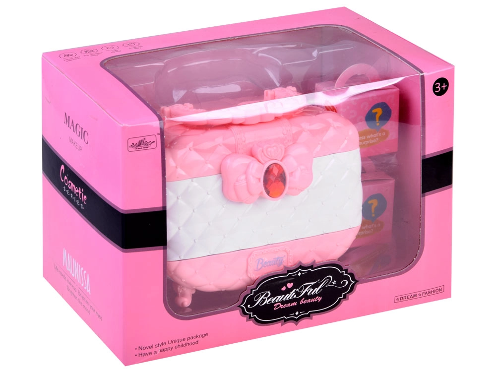 Descubre un mundo de fantasía con el neceser de maquillaje rosa Jokomisiada, diseñado para el juego creativo y el desarrollo de la motricidad fina. Los niños pueden probar de forma segura distintos colores y estilos, mientras el práctico estuche con asa mantiene todo en un solo lugar.