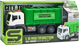 Realista camión de basura infantil a escala 1:16 que garantiza horas de diversión y aprendizaje. Gracias a la tracción por fricción, los efectos de sonido y la caja funcional, los niños comprenden fácilmente la separación de residuos. La fabricación de calidad, la superestructura abatible y dos cubos incluidos garantizan un juego variado y el desarrollo de la imaginación.