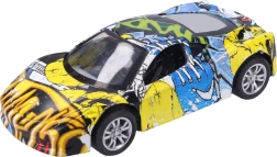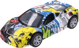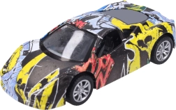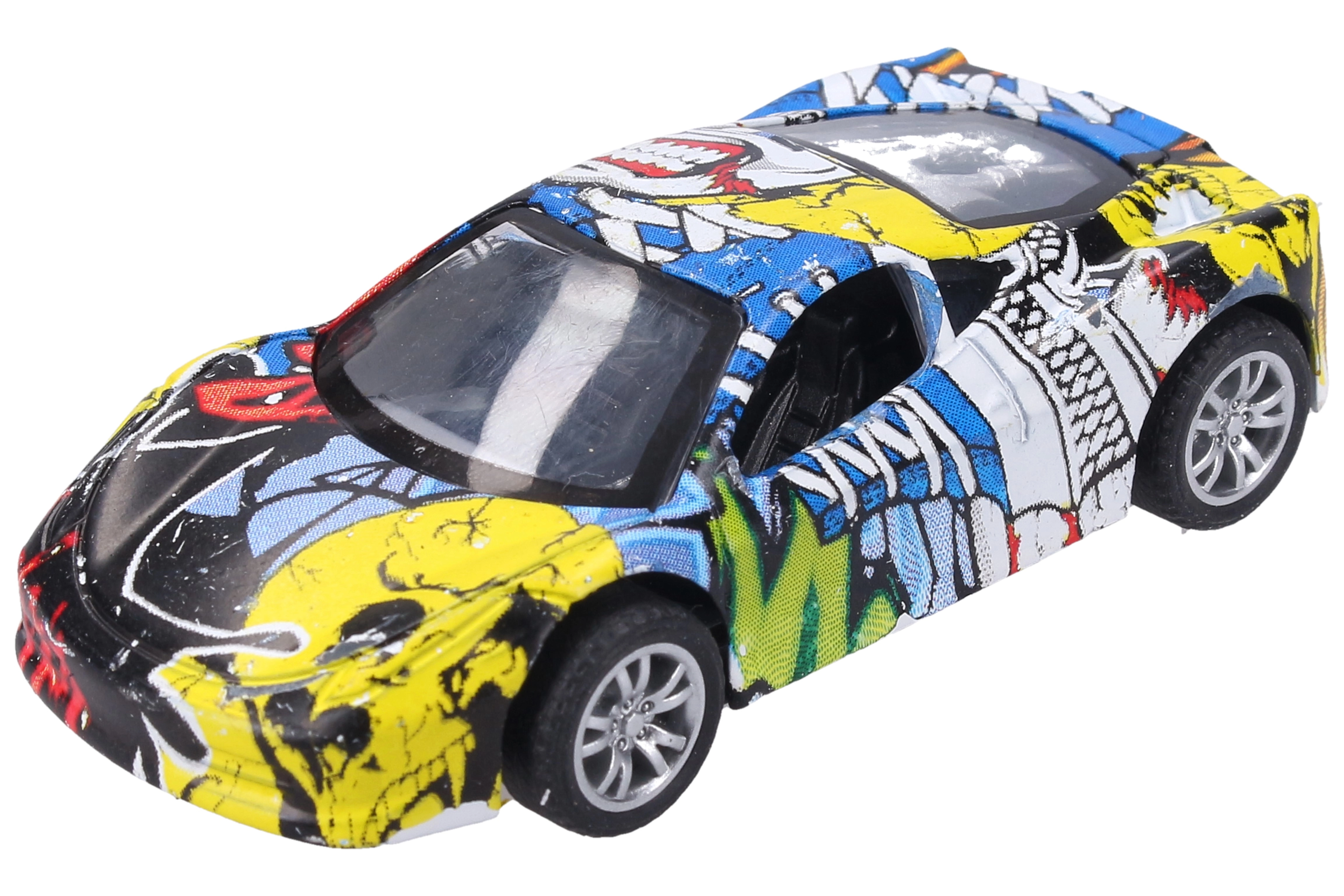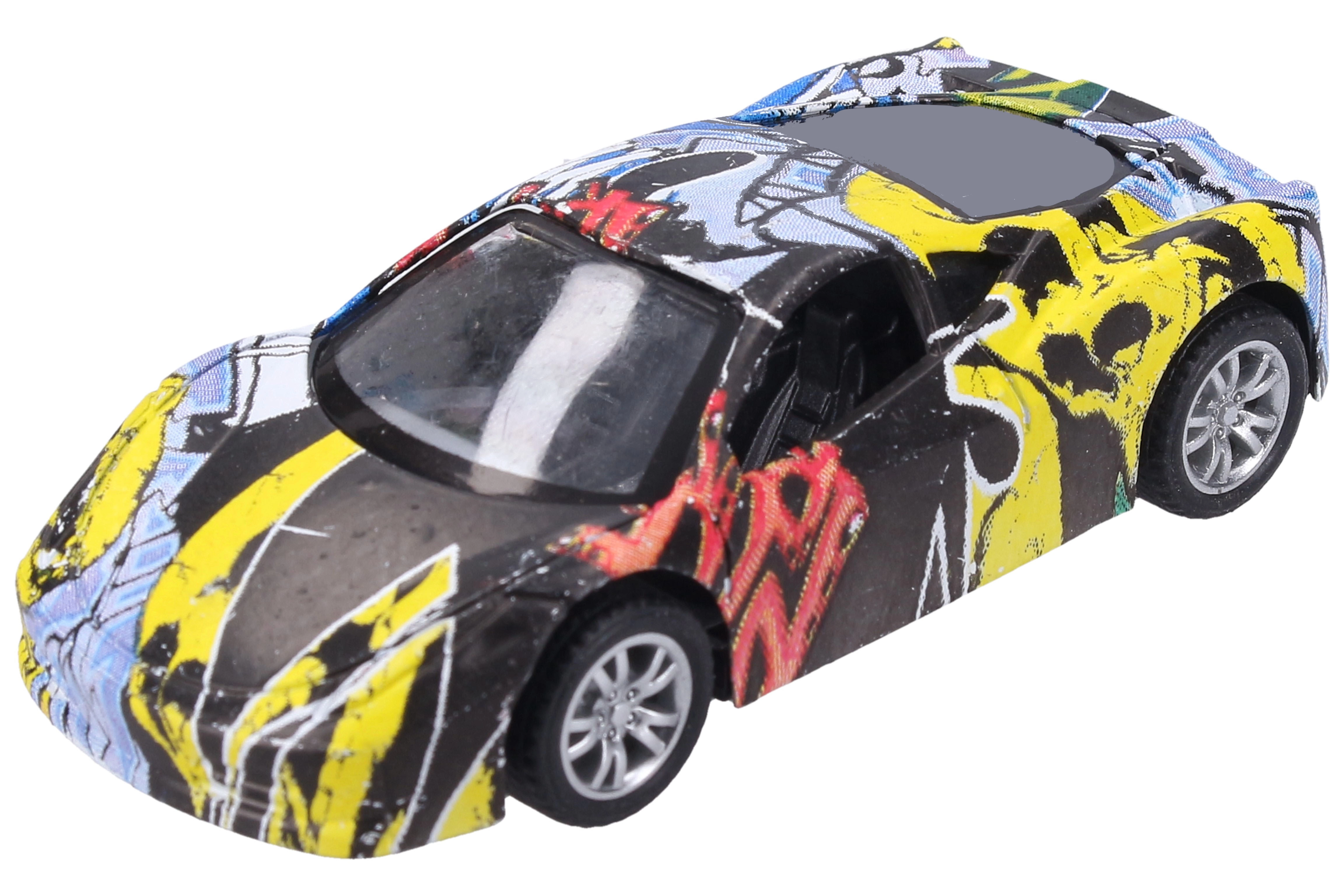 Descubre la diversión con este cochecito metálico con un estampado de graffiti único. Gracias a su fabricación de calidad y al práctico sistema de retroceso, es ideal para carreras en casa y como accesorio con estilo para la colección.
