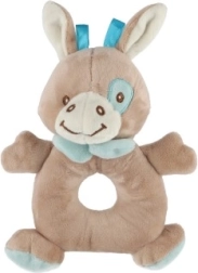 Este sonajero para bebés ligero y cómodo combina un peluche suave con una forma bien pensada. El burrito con abertura central se sujeta de maravilla y favorece el desarrollo de la motricidad fina y la percepción sensorial. El diseño en tonos neutros marrón y azul es una gran elección tanto para niñas como para niños.