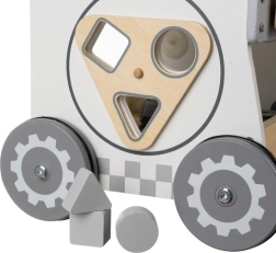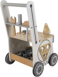 El carrito-taller de madera 3 en 1 KRUZZEL combina diversión y aprendizaje. Los niños pueden jugar a ser pequeños manitas con herramientas de madera reales, clasificar formas y descubrir el funcionamiento de los engranajes. La construcción en MDF y madera con ruedas de goma garantiza estabilidad, larga vida útil y funcionamiento silencioso.
