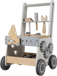 Descubre el versátil carrito de taller de madera 3 en 1 KRUZZEL: mesa de trabajo, espacio de almacenamiento y andador en uno. Fabricado con materiales seguros y no tóxicos y bordes redondeados, fomenta la motricidad fina, la creatividad y la coordinación. Gracias a su estructura robusta y ruedas silenciosas, es ideal para el aprendizaje lúdico diario y un gran regalo para niños de 3+ años.
