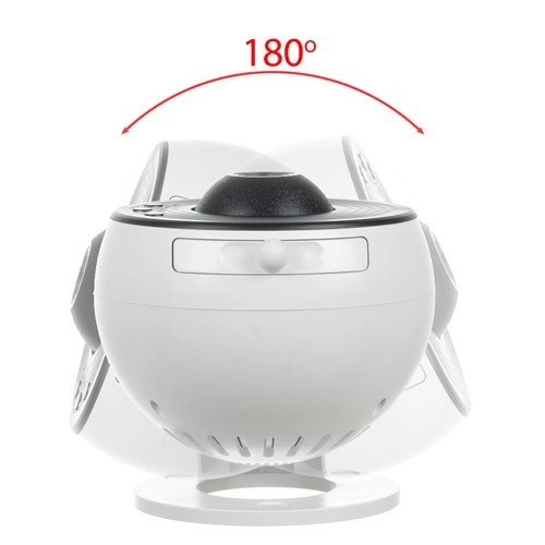 - Cabezal giratorio 360° para proyección panorámica en paredes y techo.