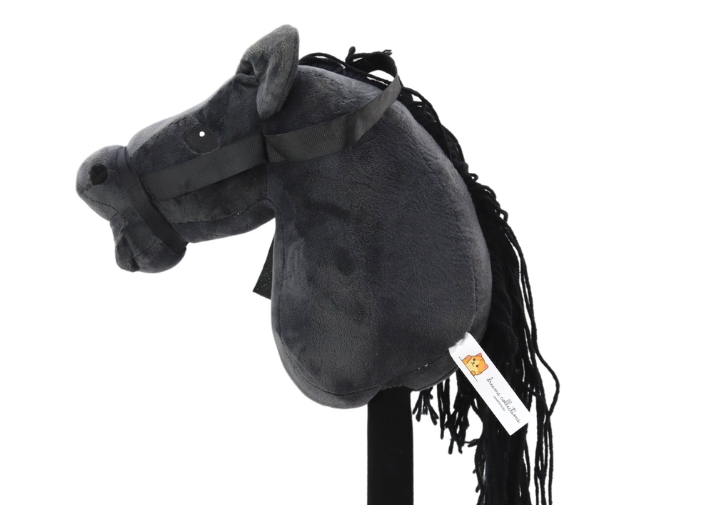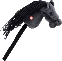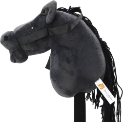 El hobby horse de peluche en elegante color negro fomenta el movimiento activo, la imaginación y los juegos de rol. Al presionar el lugar marcado en la cabeza, se oyen sonidos realistas de trote/galopar, gracias a los cuales los niños se sienten como en un caballo de verdad.