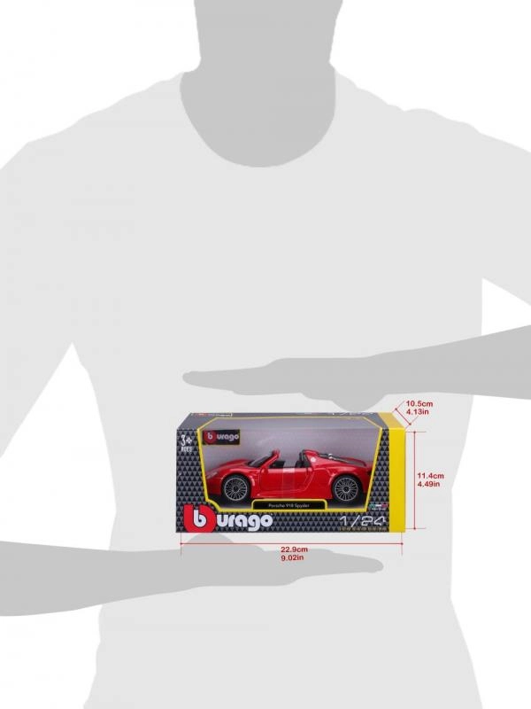 Disfruta de la belleza de un coche deportivo con el modelo Bburago Porsche 918 Spyder en tamaño 1:24. Este modelo está hecho de metal, lo que garantiza su larga vida útil y resistencia. Gracias a su elaboración precisa y a los magníficos detalles, es adecuado tanto para coleccionistas como para niños como juguete.