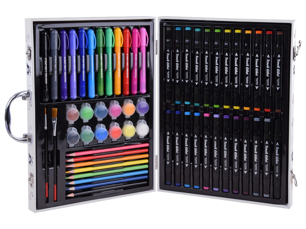 Descubre el mundo creativo con este gran set de dibujo en un práctico maletín. Incluye rotuladores, marcadores finos, lápices de colores, acuarelas y pinceles — todo organizado y listo para crear en casa o de viaje. Favorece la motricidad fina, la creatividad y la concentración de los niños.