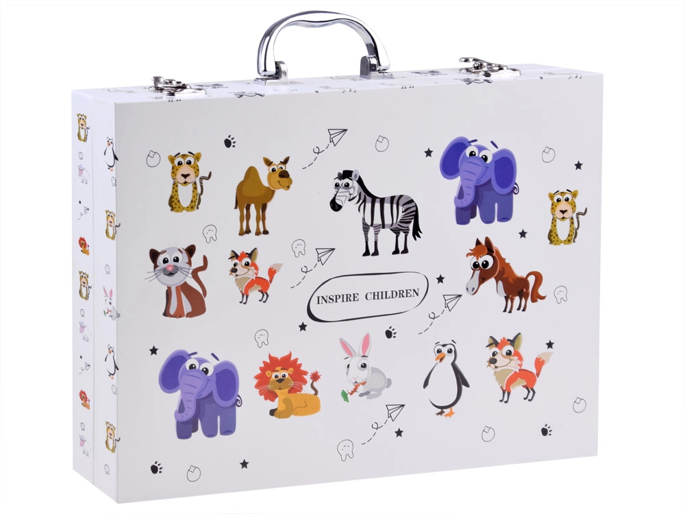 Este completo set para pequeños artistas ofrece todo lo que los niños necesitan para dibujar y pintar. El maletín compacto con divertidos motivos de animalitos se transporta fácilmente gracias a su asa resistente, para tener la creatividad siempre a mano — en casa, de excursión o en el colegio.