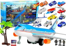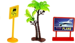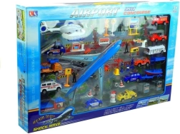 - Alfombrilla de pista, gran avión, helicóptero, 9 figuras, 2 remolques con equipaje, remolque con lancha de rescate, autobús, coche de policía, vehículo de servicio de emergencias, 2 camiones de bomberos (1 con escalera giratoria extensible), vehículo de servicio de aeropuerto con opción de acoplar remolque, vehículo de trabajo con elemento giratorio y plataforma elevadora extensible/escalera, palmeras, barreras, farolas, señales de tráfico