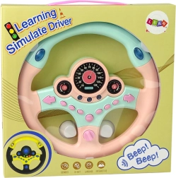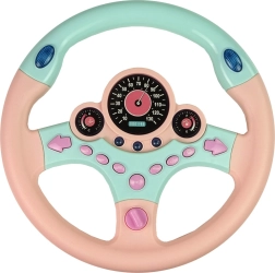 Volante infantil interactivo en color rosa‑turquesa que ofrece un simulador de conducción realista con sonidos y luces. Cuenta con 9 botones funcionales, incluidos intermitentes, claxon y sonidos de servicios de emergencia. Los “instrumentos” iluminados y el arranque con llave intensifican la experiencia de conducción y ayudan a los niños a aprender los conceptos básicos de las normas de tráfico.