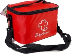 La práctica bolsa textil bandolera con el texto “Baby Doctor” mantiene todas las herramientas juntas y es perfecta tanto para los viajes como para jugar en casa. Jugar a los médicos reduce de forma natural el estrés de la consulta real y lo transforma en una experiencia positiva.