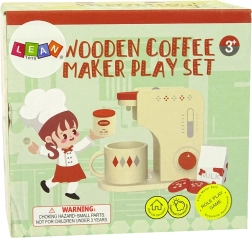 La cafetera infantil de madera en una elegante combinación de colores beige y rojo encantará a pequeños baristas. Gracias al selector giratorio y a la escala del panel frontal, el juego resulta natural y realista. Los niños pueden “preparar” espresso, cappuccino o latte, añadir leche y endulzar con azúcar, todo exactamente a gusto de los invitados.