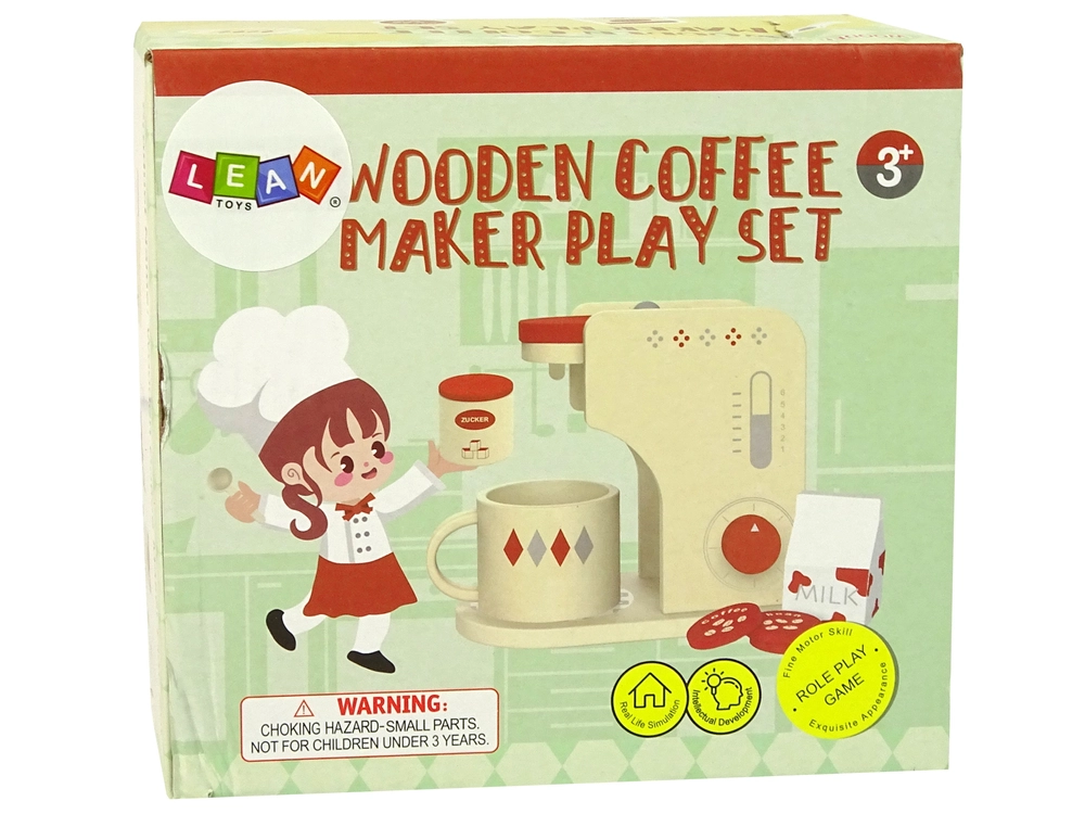 El set está diseñado para un juego seguro: la madera es resistente y agradable al tacto, las piezas se adaptan bien a las manos pequeñas y favorecen el desarrollo del agarre y la coordinación ojo–mano. Es perfecto para cualquier cocinita infantil o para “abrir” una cafetería en la habitación.
