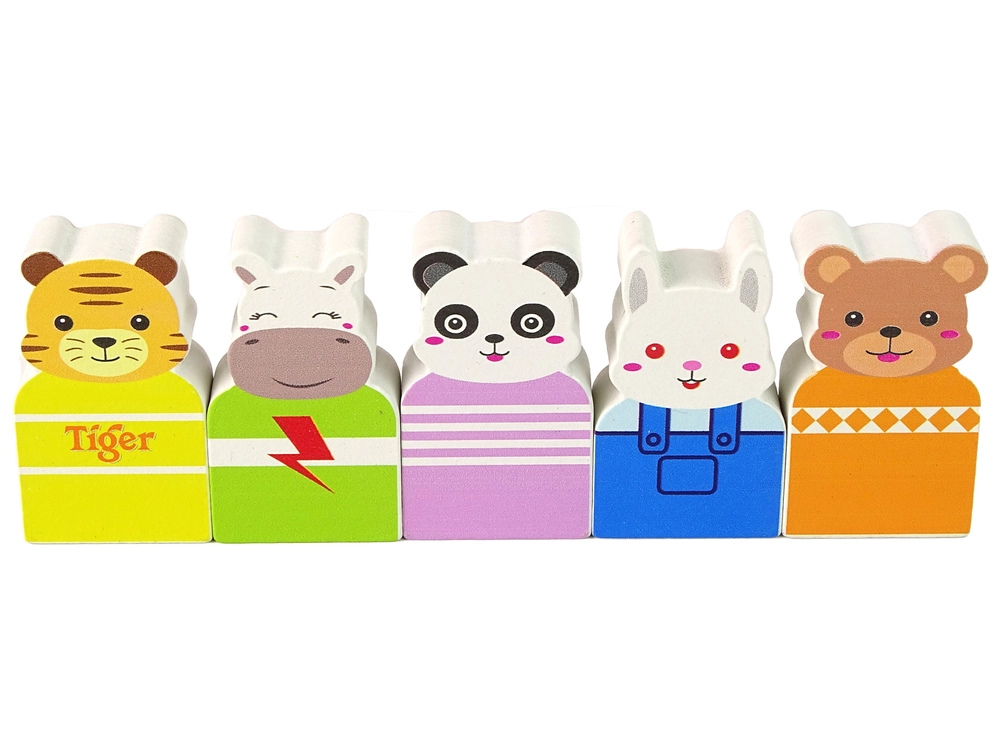 Cinco figuras (panda, tigre, conejo, oso, hipopótamo) y los números en las góndolas fomentan el aprendizaje de colores y de los primeros números de forma lúdica.
