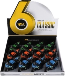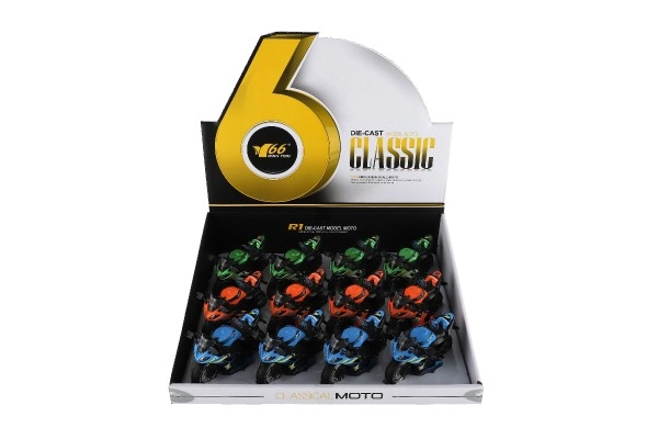 Esta moto de carreras está diseñada para niños a partir de 3 años y ofrece detalles realistas en tres colores diferentes. Mide 12 x 7 x 6 cm y está hecha de una combinación de metal y plástico.
