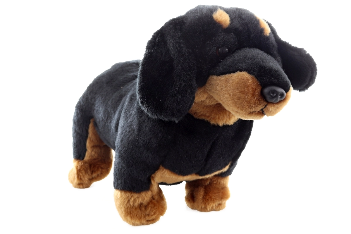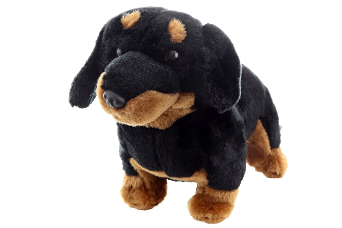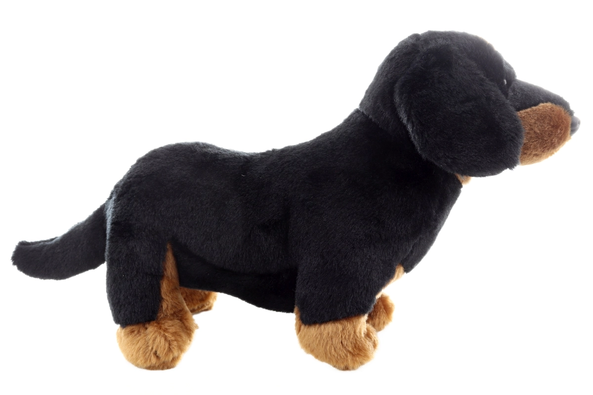 El perro salchicha de peluche cuenta con un diseño realista y orejas caídas, lo que lo hace irresistible para niños y amantes de los perros.