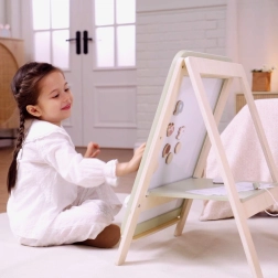 La pizarra de madera PolarB es una excelente herramienta para pequeños artistas, que fomenta el juego creativo y el desarrollo de habilidades manuales. La pizarra tiene dos caras: una clásica pizarra negra y otra blanca magnética. Gracias a la altura ajustable, se adapta al crecimiento del niño, garantizando un juego cómodo en diferentes etapas de desarrollo.