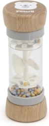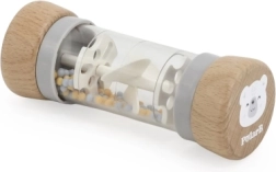El sonajero transparente con cuentas emite sonidos suaves y relajantes que invitan a explorar. El niño entrena el oído, el seguimiento visual y la coordinación ojo‑mano al agitar, girar y pasar de una mano a otra.