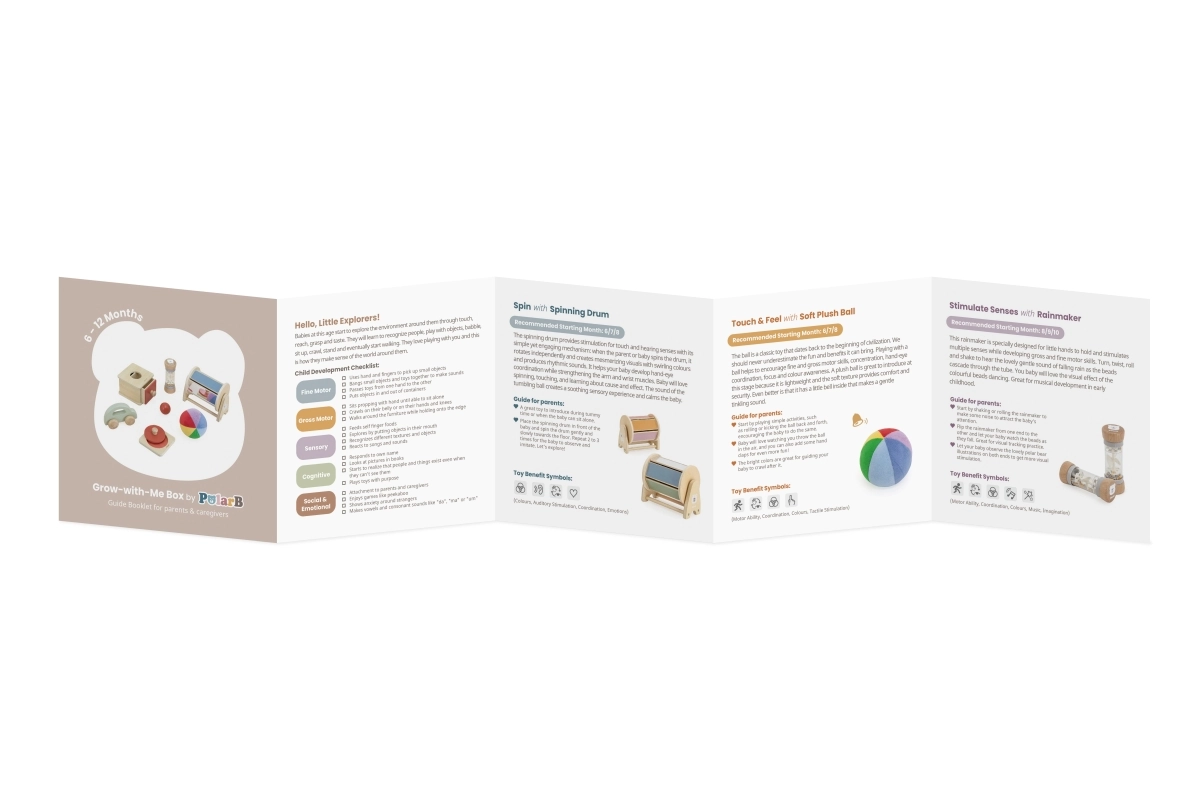 El juego de juguetes Montessori POLARB combina una fabricación de madera de calidad con actividades cuidadosamente diseñadas para el desarrollo temprano del bebé. Gracias a las diferentes texturas, sonidos y formas, el niño aprende a agarrar, explorar y experimentar, lo que desarrolla de forma natural su motricidad, sus sentidos y el pensamiento lógico.