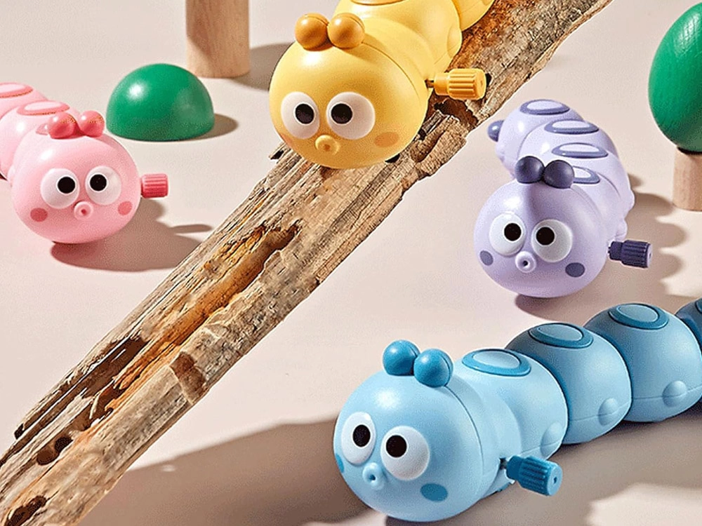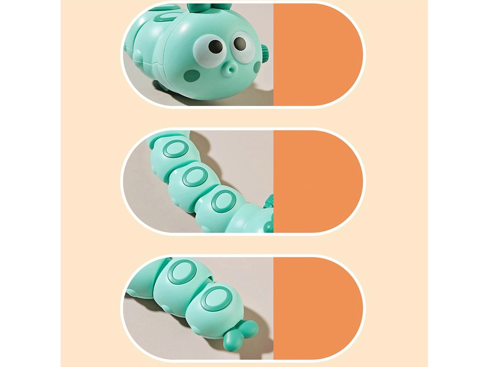 Esta adorable oruga con llave se mueve hacia delante por sí sola tras darle cuerda y se ondula rítmicamente, lo que invita de forma natural a los niños a gatear, dar pasitos y jugar juntos. Gracias a sus colores intensos y grandes ojos, resulta visualmente atractiva y ayuda a mantener la atención.