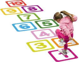 Saltar sobre las casillas numeradas mejora la motricidad y el equilibrio: perfecto para jugar a la rayuela.