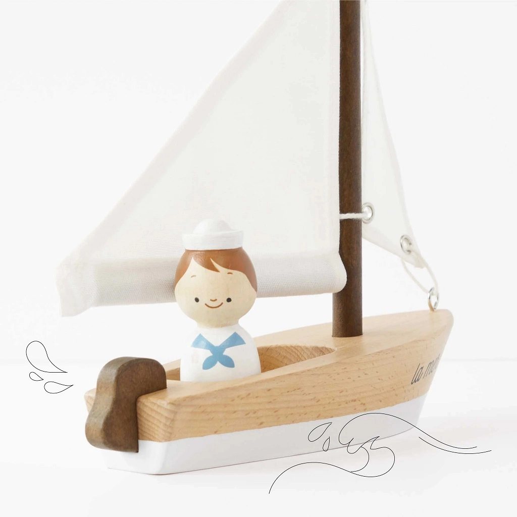 El velero de madera de Le Toy Van es el complemento perfecto para cualquier amante del juego imaginativo. Con elegancia y un toque auténtico, las velas de algodón y la bandera ondean suavemente al viento. Un marinero en miniatura de madera con vestimenta pintada a mano aumenta el valor de juego de este juguete.