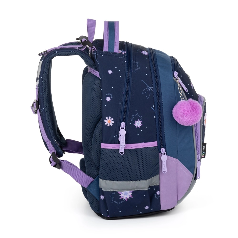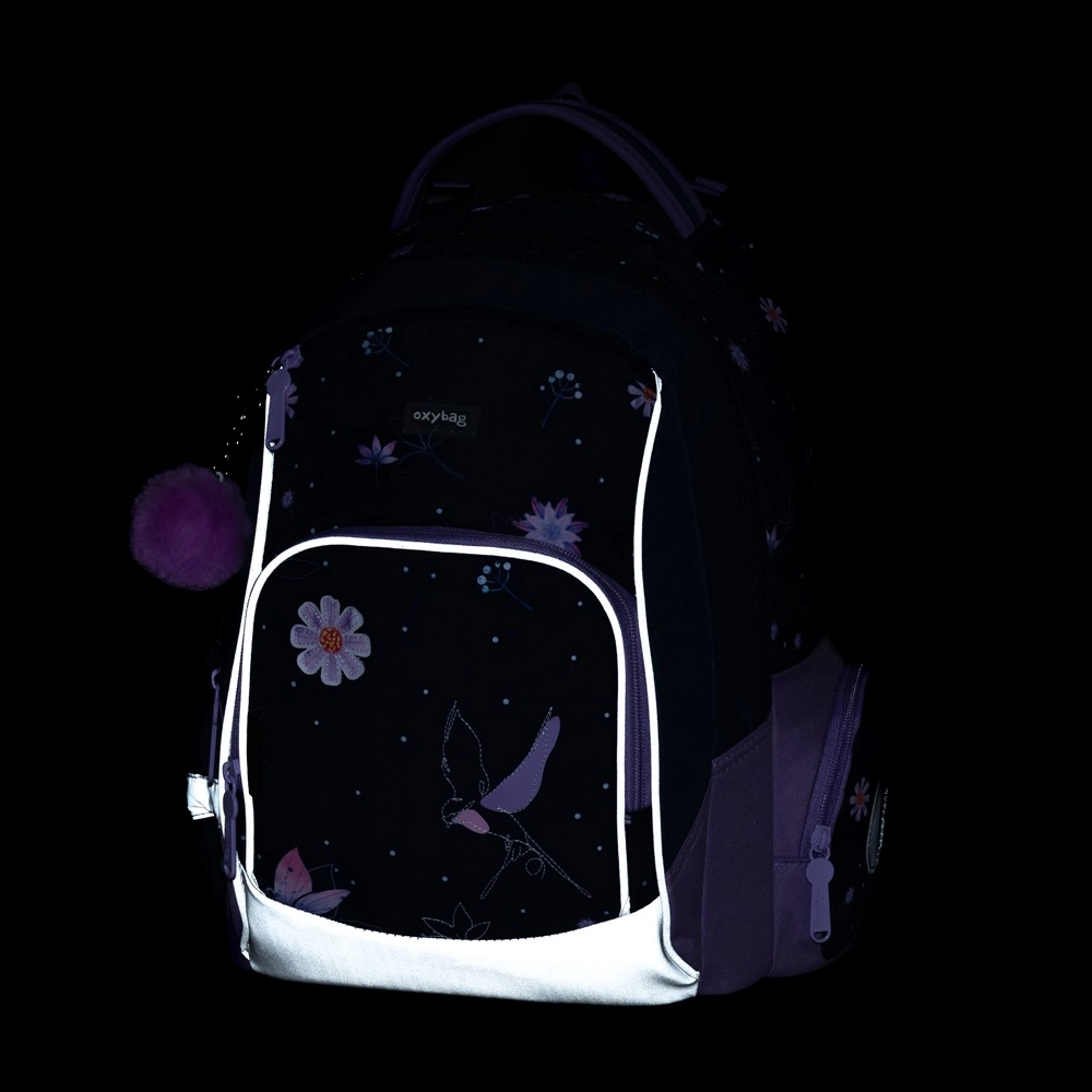 La mochila escolar con estampado floral no solo se ve genial, sino que también está cuidadosamente diseñada para un uso cómodo y saludable. La mochila está equipada con tirantes ergonómicos y cómodamente acolchados, que se pueden ajustar fácilmente para adaptarse a las necesidades de cada niño. Los elementos reflectantes garantizan una mayor seguridad del niño en condiciones de poca visibilidad.