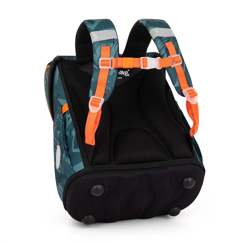 La seguridad se ve reforzada por elementos reflectantes y hebilla metálica con reflector. El fondo rígido protege el contenido frente a vuelcos y derrames, y los ganchos adicionales permiten un mejor ajuste de los tirantes. Gracias a los tirantes anchos y acolchados, la mochila distribuye el peso de manera uniforme y cuida los hombros de los niños.