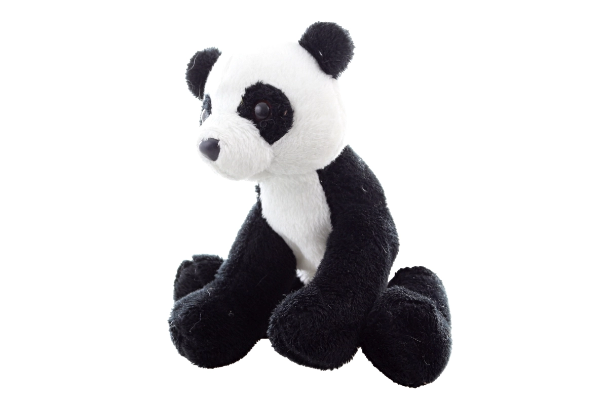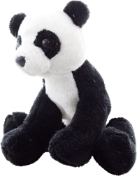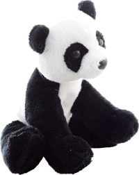 El acabado realista, incluyendo las manchas negras alrededor de los ojos y las orejas, le da a la panda un aspecto natural. Las bolitas integradas permiten que la panda se siente por sí sola.